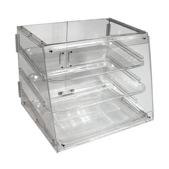 Store and present those delicious baked goods and make them more appealing to your customers by using this Clear Acrylic 3-Tier Counter Top Display Case. This counter top display case comes with three removable acrylic trays and features two easy access doors, rear doors for tray loading and a front self-service lift up door.
