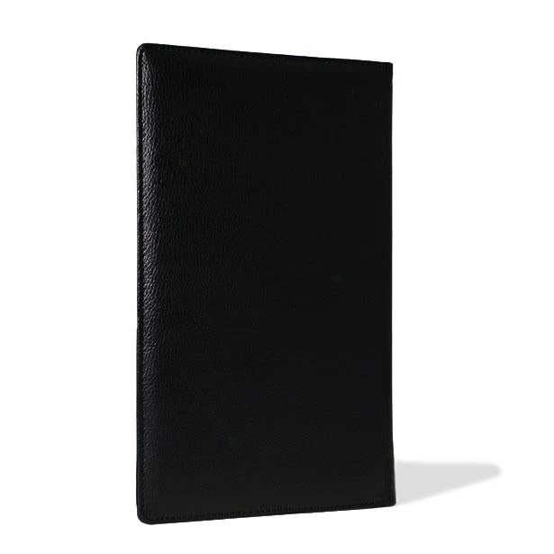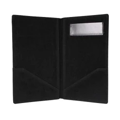 These check holders are constructed from a high quality leather and polyester material combo on the outside, with a soft velvet lining on the interior. The face of the folder showcases a full color cork texture inspired design perfect for any type of service. The inside features 2 slots to hold checks, cash and receipts securely while the plastic slot is perfect for holding credit cards. Measures: 5.75″ x 10″.