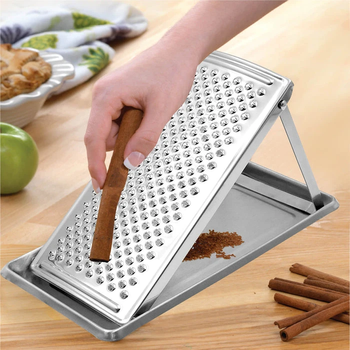 This strong unit is a must have for your kitchen. The foldable BarConic® Grater is a tool that is necessary for anyone who loves to cook. Simply lift the grater out of the tray and pull down the handle and lay it flat against the tray and you have an easy way to grate a variety of foods. The foldable mechanism in this tool allows you to be able to store it in tight spaces. It is made of durable stainless steel and is 8.5″ long and 4.25″ wide.