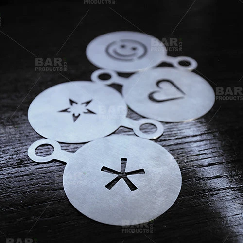 These BarConic® Stainless Steel Cocktail Stencils provide a fun and interesting way to garnish your craft cocktails. They are versatile and can work for any cocktail, fancy coffee or other beverage. It is as simple as holding the stainless steel cocktail stencil over the glass and sprinkling over the preferred ingredient, such as cinnamon or coco powder. The stencil is made of durable stainless steel that is reusable, easy to clean and does not stain.