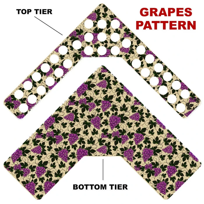 Here is a simple way to choose your Counter Caddy design from several pattern templates. Have the ability to match up your kitchen theme simply by choosing from our wide selection! You also have the ability to choose the height of your unit. The Dowel Rods are available in 3.5″, 5,75″ and 7.5″ heights elevating your second tier to preferred under cabinet heights. This particular Counter Caddy features (35) K-Cup hole slots on the top tier measuring 1.5″ in diameter. These holes are perfect for storing and displaying your favorite K-Cup flavors!