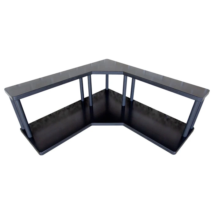 These 2-tier wood shelves are made out of baltic birch and designed to fit perfectly in the corner on the counter underneath your cabinets. The tall dowel rods lift the 2nd shelf up 7″ above the 1st shelf, allowing the perfect amount of space to hold your coffee-related supplies such as sugars, creamers, and other condiments.