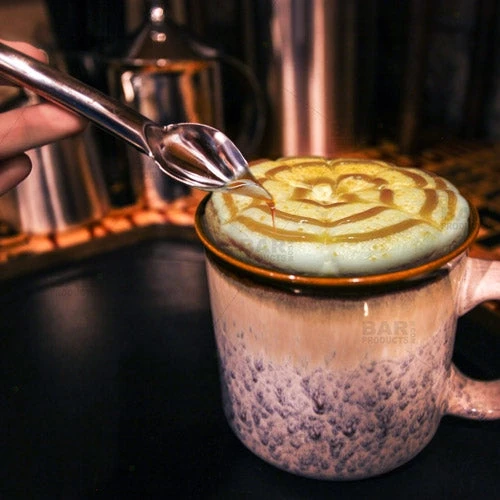 Decorating Spoons are a wonderful alternative to squeeze bottles when it comes to garnishing and decorative plating for beautiful entrees or desserts. Use these spoons to add a special touch to hot or cold cafĂŠ beverages and coffee cocktails with drizzles of chocolate or caramel. This Decorating Spoon Set comes with two decorating spoons, one small and one large, each constructed of strong stainless steel. Where pastry bags and squeeze bottles fall short is in their design. This spoons curved shape and tapered end allow you to quickly change between sauces but simply rinsing the spoon and moving onto the next.