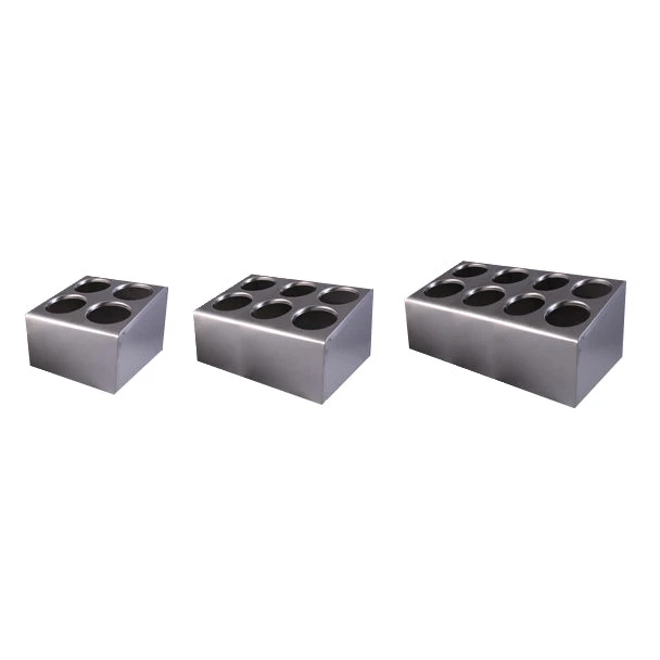 These Cylinder Flatware Holders are made of heavy gauge stainless steel with rolled edges for safety and durability. They are available with 4, 6 or 8 openings, and are great for organizing your flatware and silverware. Perfect for buffets or serving stations.