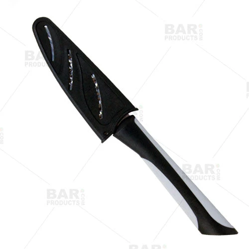 If you are looking for the most ideal way to slice up your citrus fruits, such as limes, lemons, oranges and grapefruits, then you will love what the Luna Knife offers! This knife has been designed to be a handy addition in your kitchen or behind the bar. The small serrations on the blade will easily cut through the tough skins known to citrus fruits.It also works beautifully when cutting around the membranes between grapefruit segments, and for lemon or lime peels creating a citrus twist to accent a wide variety of craft cocktails.