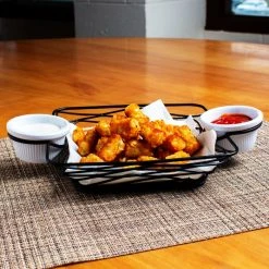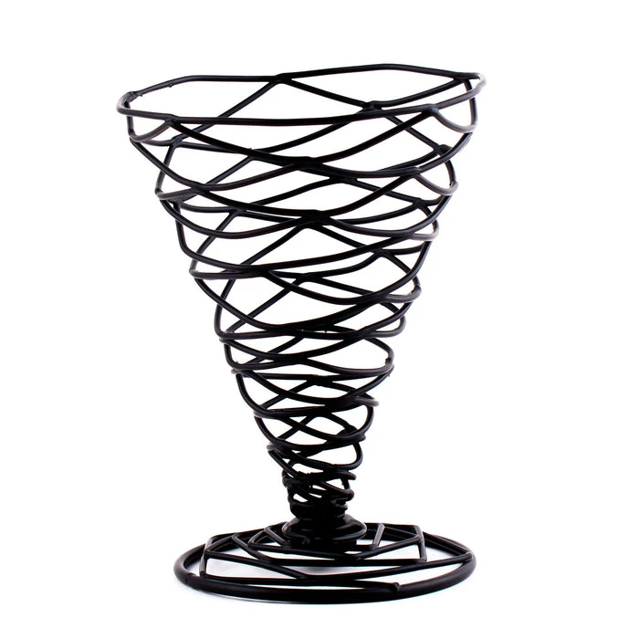 This serving cone is a truly unique way to serve up some tasty appetizers. Made of very durable black powder coated metal. The cone and base come in two separate pieces that attach together. Simply take the base and screw it to the bottom of the cone and you’re good to go. It stands 6.5″ tall and has a rim diameter of 4.75″. This product is recommended to be hand washed only.