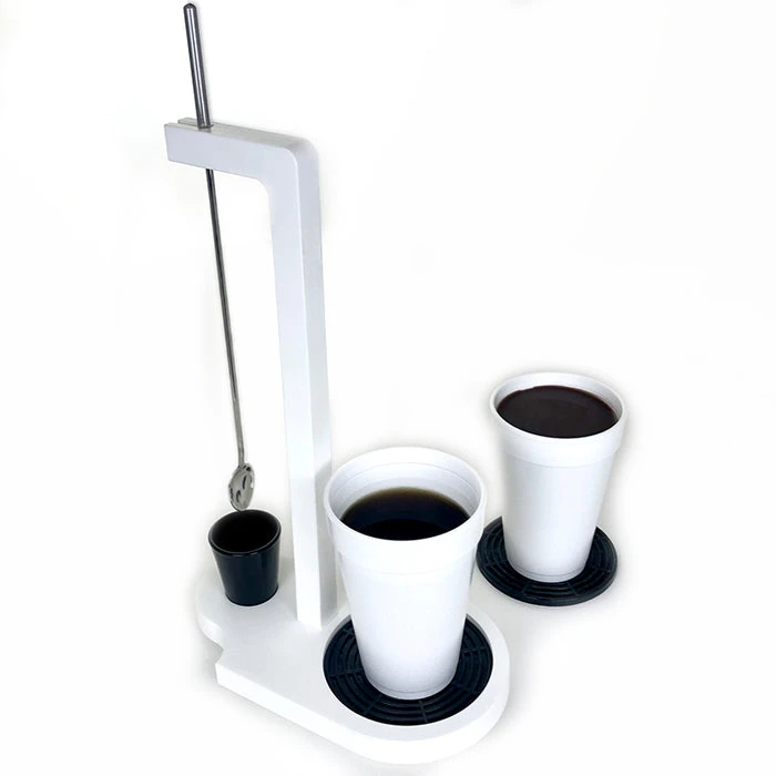 Our handcrafted StirStations™ offer a streamlined solution for mixing coffee without wasting disposable materials. Simply place your coffee mug on the StirStation™ base, stir in your preferred condiments with the provided spoon, and replace the spoon on the StirStation™ arm. Your spoon will drip dry into the provided shot glass for the next process. Great for home, office, and small gatherings.